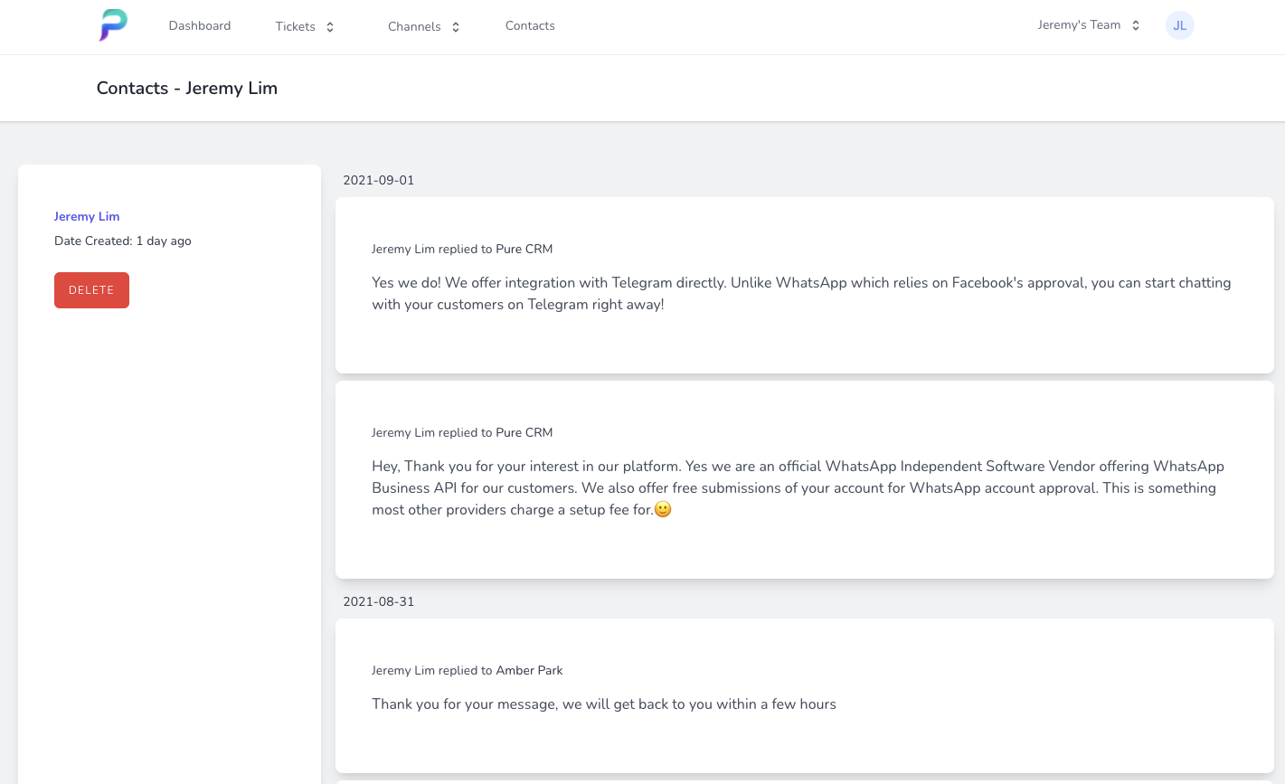 Pure CRM is the chat-focused business messaging solution with Whatsapp Business Auto Reply feature that makes marketing, sales and support easy.